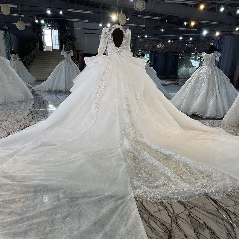 MN113-1แจนเซมเบอร์ชุดแต่งงานเจ้าสาวชุดเจ้าสาวปักเลื่อมเปลือยหลังโบว์อาหรับหรูหรา