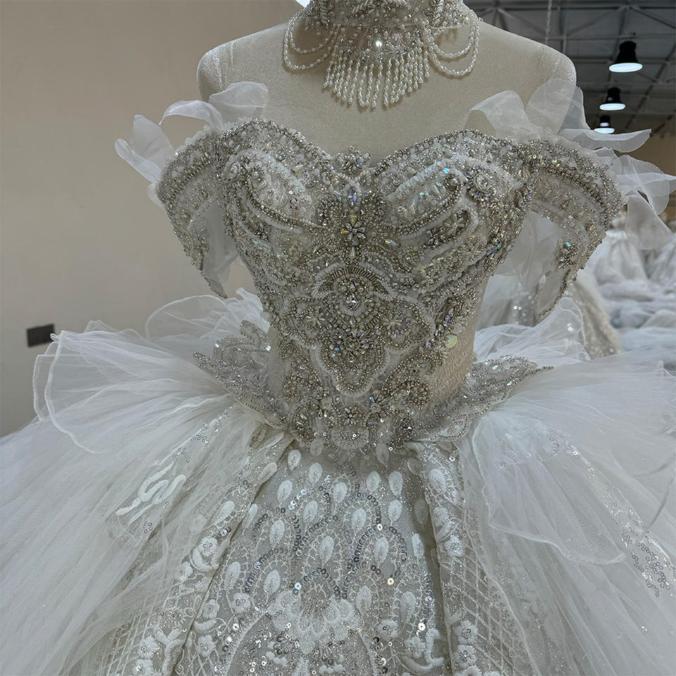 MN253แจนเซมเบอร์เดรสสำหรับงานแต่งงานประดับด้วยลูกปัดเลื่อมเปิดไหล่