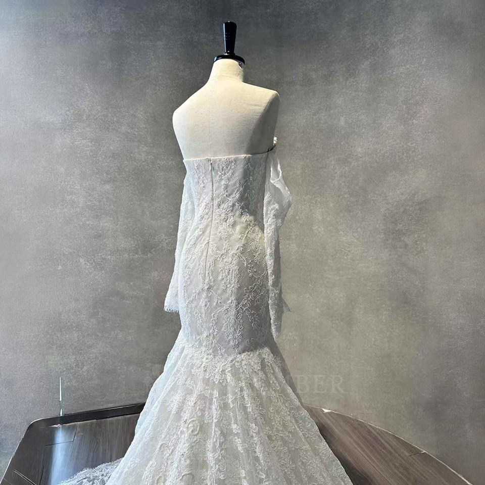 ชุดแต่งงานทรงเมอร์เมด NT11 หรูหรา ทันสมัย ประดับด้วยคริสตัลลายดอกไม้ ปักลายลูกไม้ พร้อมชายกระโปรงยาวแบบชาเปล