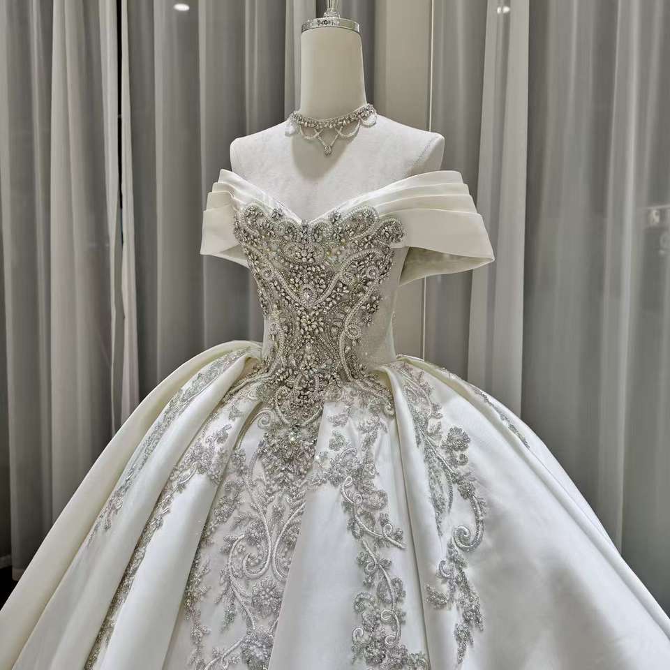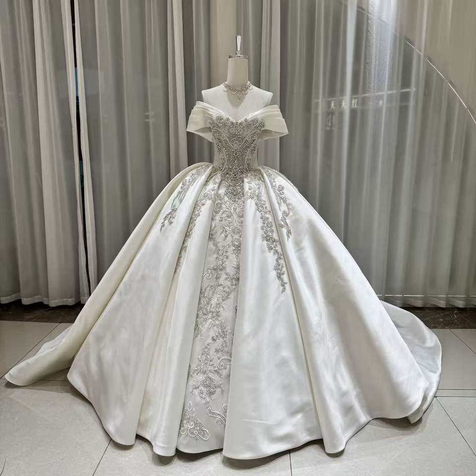 ชุดแต่งงานหรูหรา Jancember OY035 ผ้าซาตินประดับลูกปัด ชุดเจ้าสาวแบบเปิดไหล่ทรงบอลกาวน์ ชุดแต่งงานแบบราชวงศ์สำหรับพิธีในโบสถ์