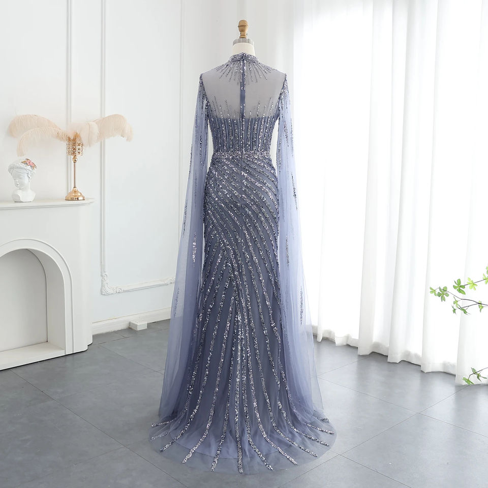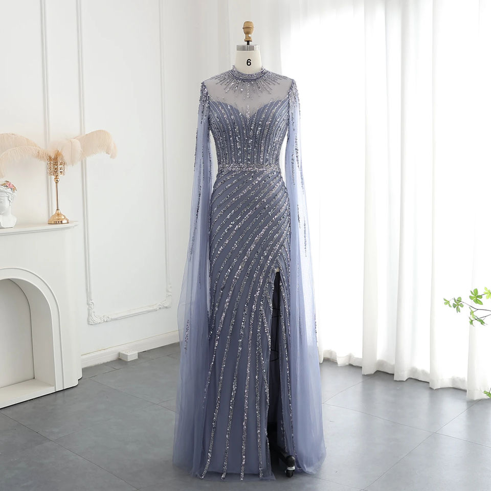 แจนเซมเบอร์ SZ174เดรสยาวสำหรับงานพรอมสำหรับตอนเย็นทรงนางเงือกคอสูงพร้อมแขนเสื้อแบบสวมศีรษะ