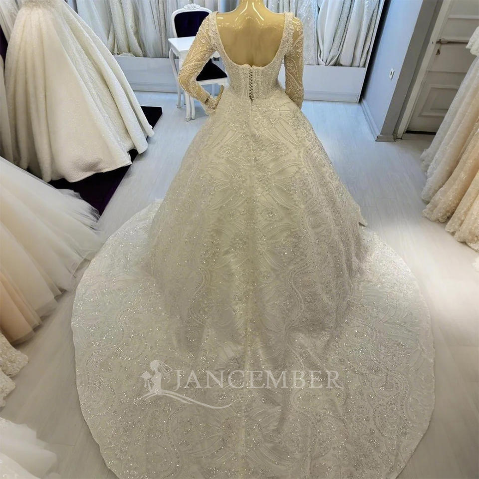 สำหรับ jancember ชุดแต่งงานของผู้หญิงสมัยใหม่ชุดกระโปรงลูกไม้ยาวคอปกคริสตัล TK138-08สำหรับเจ้าสาว