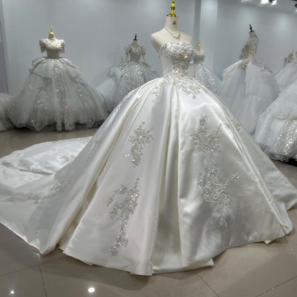 ชุดเดรสแต่งงานของเจ้าสาวชุดเดรสเกาะอกแต่งลูกปัดผ้าซาติน XS098 Jancember