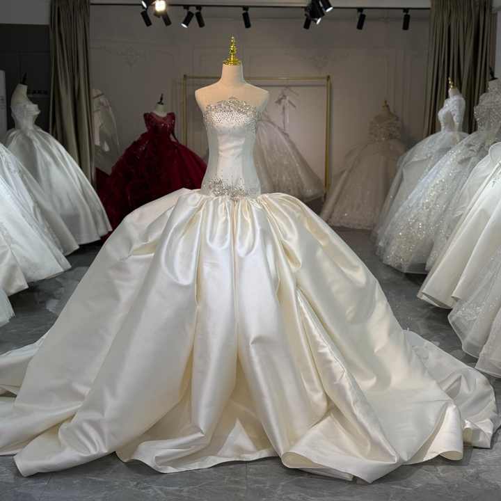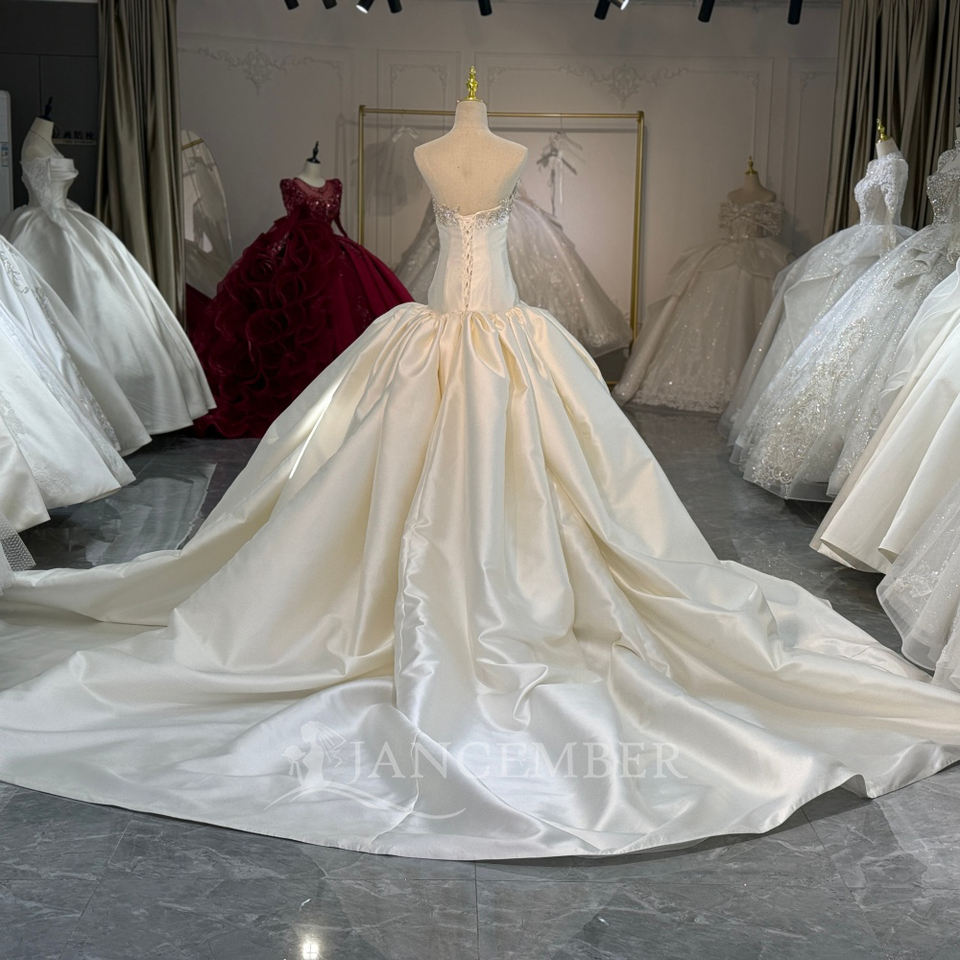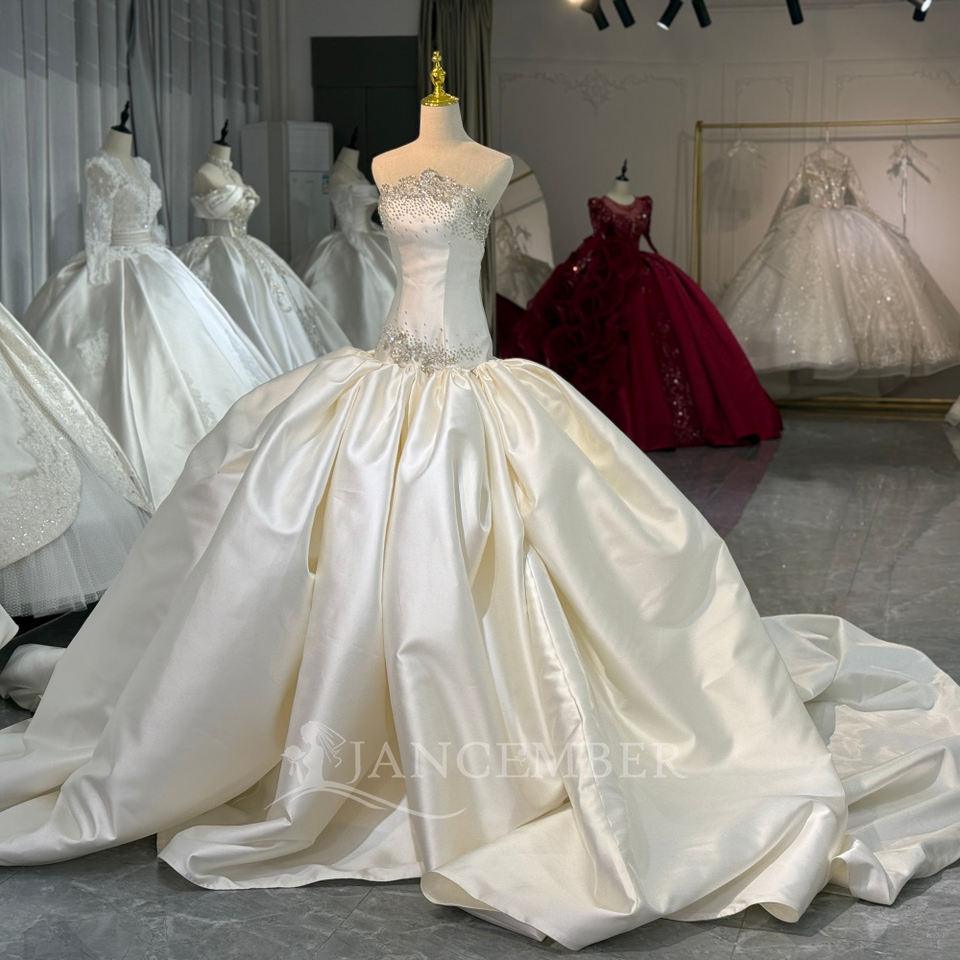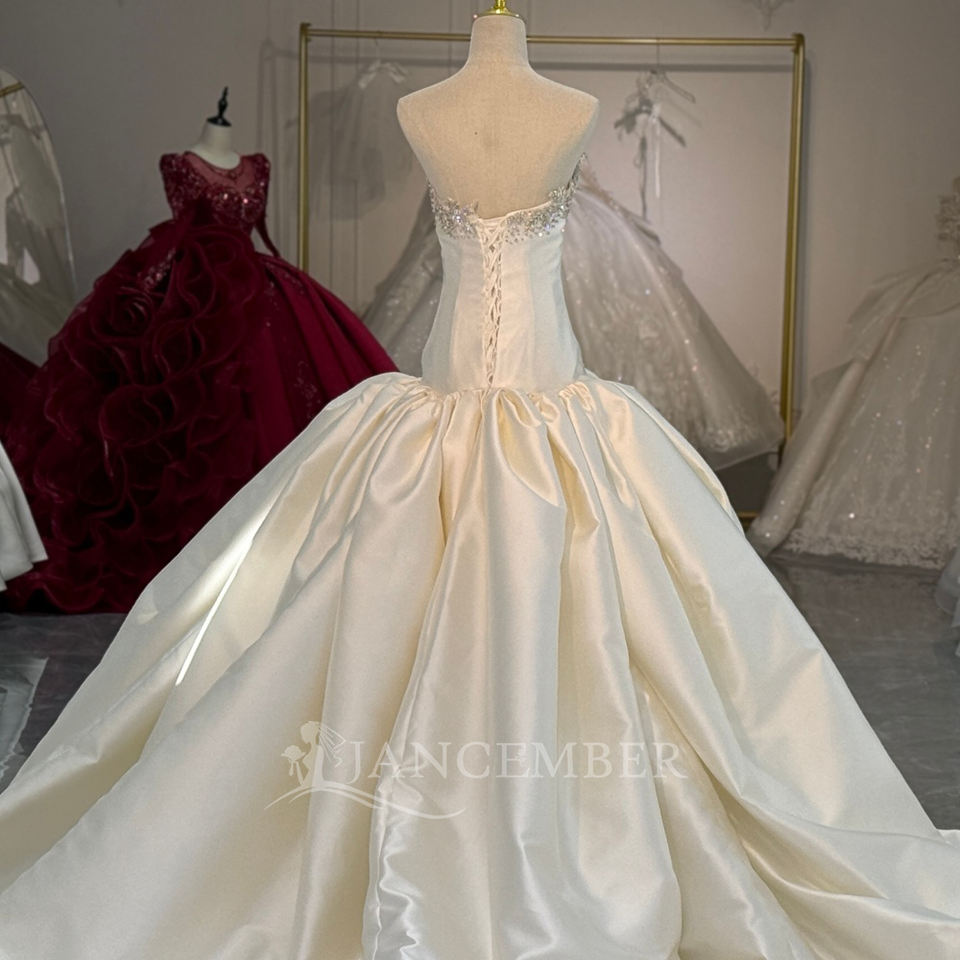 ชุดแต่งงาน Jancember XS254 สีไอวอรี่ ผ้าซาติน หรูหรา ประดับด้วยลูกปัด ชุดเจ้าสาวแบบไร้สาย ทรงบอลกาวน์ ชุดแต่งงานแบบ Cathedral