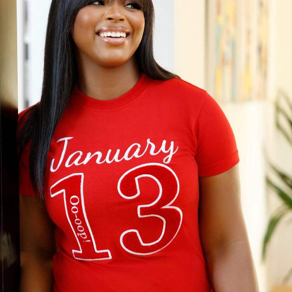 Janumary 13 DST chenille เสื้อยืดปักลายผ้าฝ้ายพรีเมี่ยมเสื้อผ้าสโมสรเสื้อยืดมรดกของชาวกรีกเดลต้าสีแดง