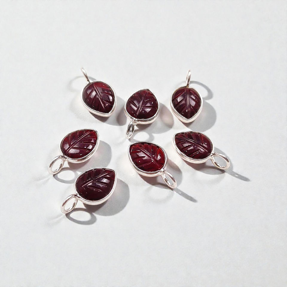 จี้เงินแท้ 925 ประดับพลอยโกเมน 1 ม.ค. รูปใบไม้แกะสลัก ขนาด 8x10 มม.