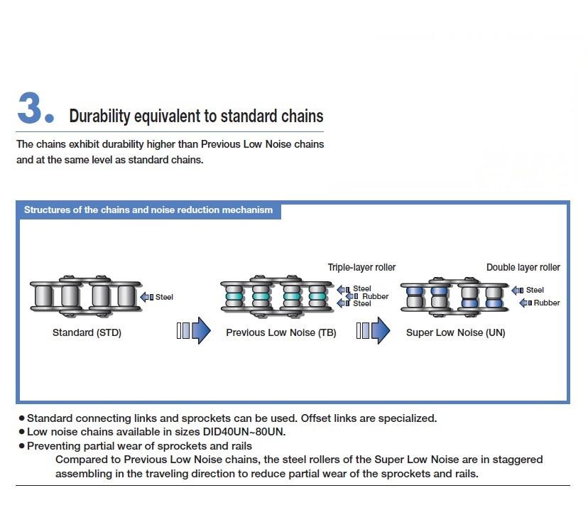 โซ่เสียงเบาพิเศษจากญี่ปุ่น, 40UN / 50UN / 60UN / 80UN, 10 ฟุต/กล่อง, สำหรับเครื่องพิมพ์ / เครื่องบรรจุภัณฑ์, เครื่องใช้สำนักงาน