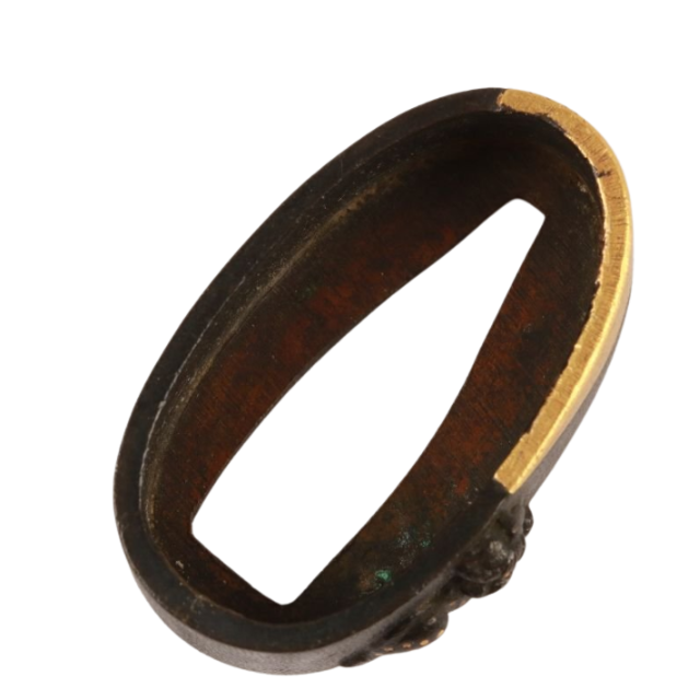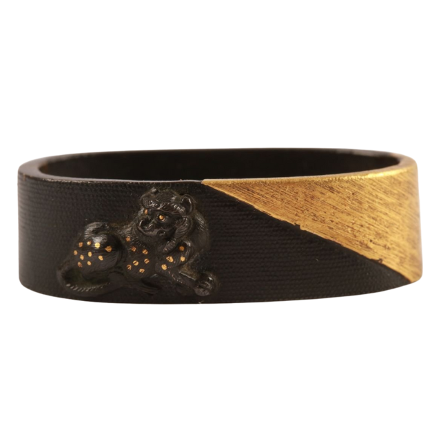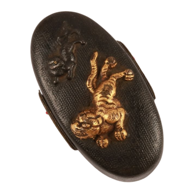 ชุดฟุจิ คาชิระ ยุคเอโดะของญี่ปุ่น สำหรับดาบ ทองแดงขัดเงาโบราณ นาแนโกะ อิโรเอะ ลายสิงโตและเสือ ไม่มีตราประทับ