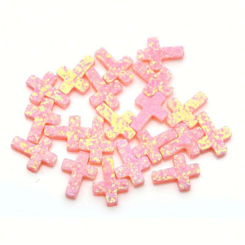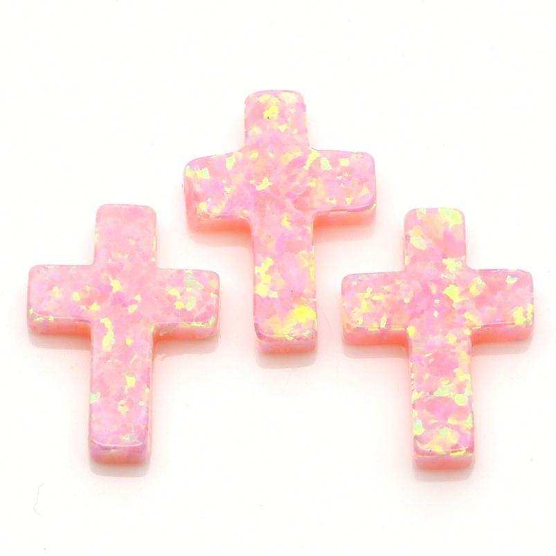 สร้อยคอโอปอลอัญมณีสีชมพูรูปไม้กางเขนผลิตจากห้องปฏิบัติการญี่ปุ่น