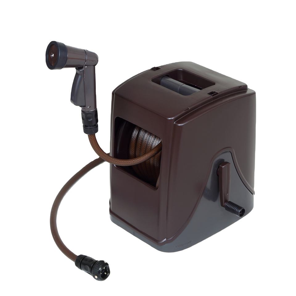 Japan Manufacture Portable 20M PVC Water Hose Reel Durable Plastic 5L Capacity Adjustable Nozzle for Home Gardening Car Washing
