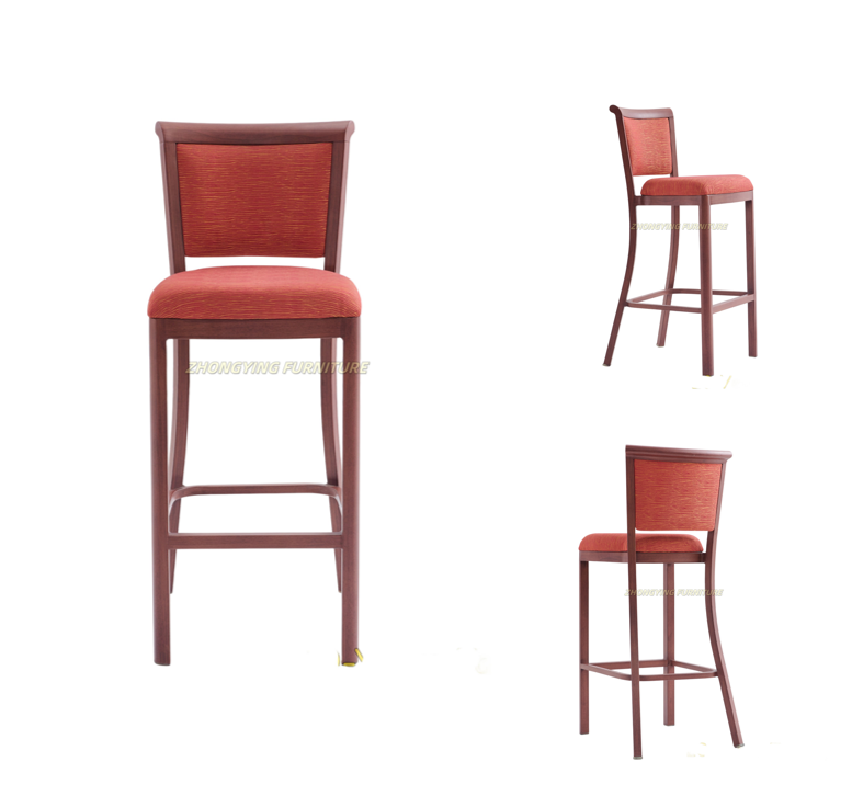 เก้าอี้สตูลบาร์สูงผ้าเลียนแบบไม้สำหรับเคาน์เตอร์โรงแรมเก้าอี้โลหะสไตล์ญี่ปุ่น