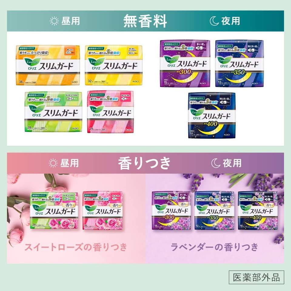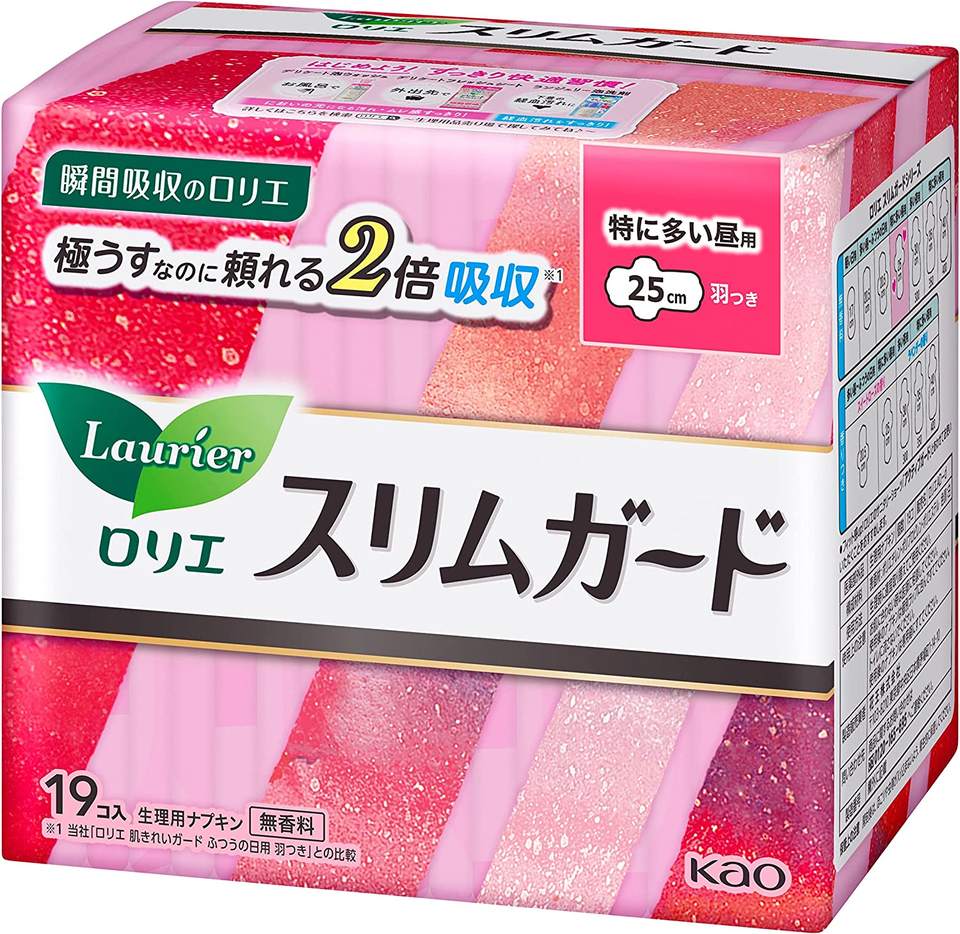 แผ่นรองสุขาภิบาล Kao Laurier,แผ่นกันหนาวหนา25ซม. มีปีก19ชิ้นผลิตในญี่ปุ่นชุดบริษัทไม่เครียด