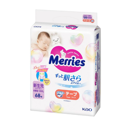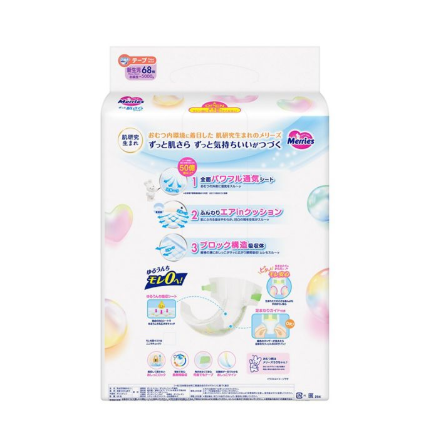 Kao Merries Air Thru แบบดั้งเดิมของญี่ปุ่นกางเกงแพ็คจัมโบ้สำหรับทารกแรกเกิดผ้าอ้อมเด็กแบบใช้แล้วทิ้ง68ชิ้นแพ็คประหยัดผลิตในประเทศญี่ปุ่น