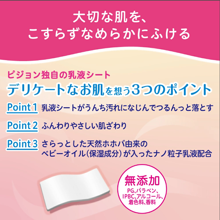 ผ้าเช็ดทำความสะอาดเด็กญี่ปุ่นพีเจ้น 64 แผ่น x 6 แพ็ค ผลิตในญี่ปุ่น เนื้อผ้าฝ้ายหนานุ่ม ให้สัมผัสนุ่มฟู สำหรับทำความสะอาดผิวบอบบางของทารกแรกเกิด