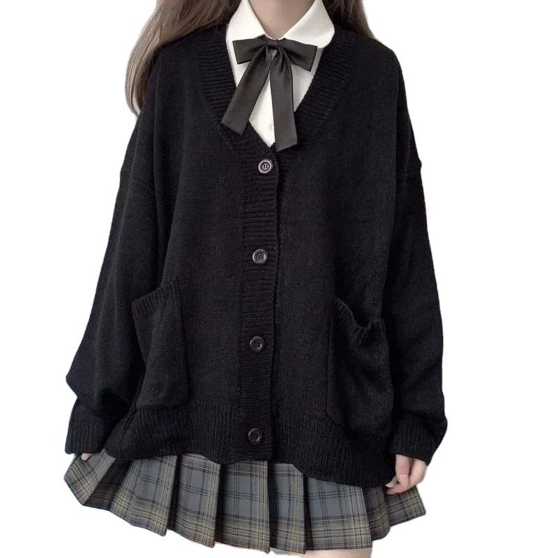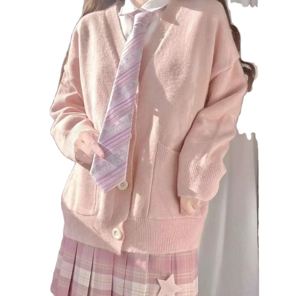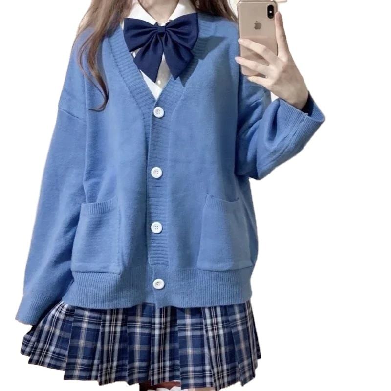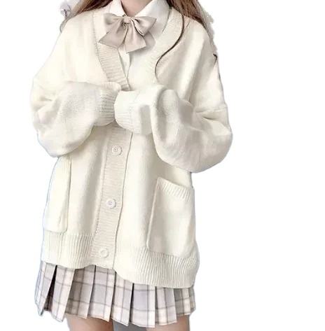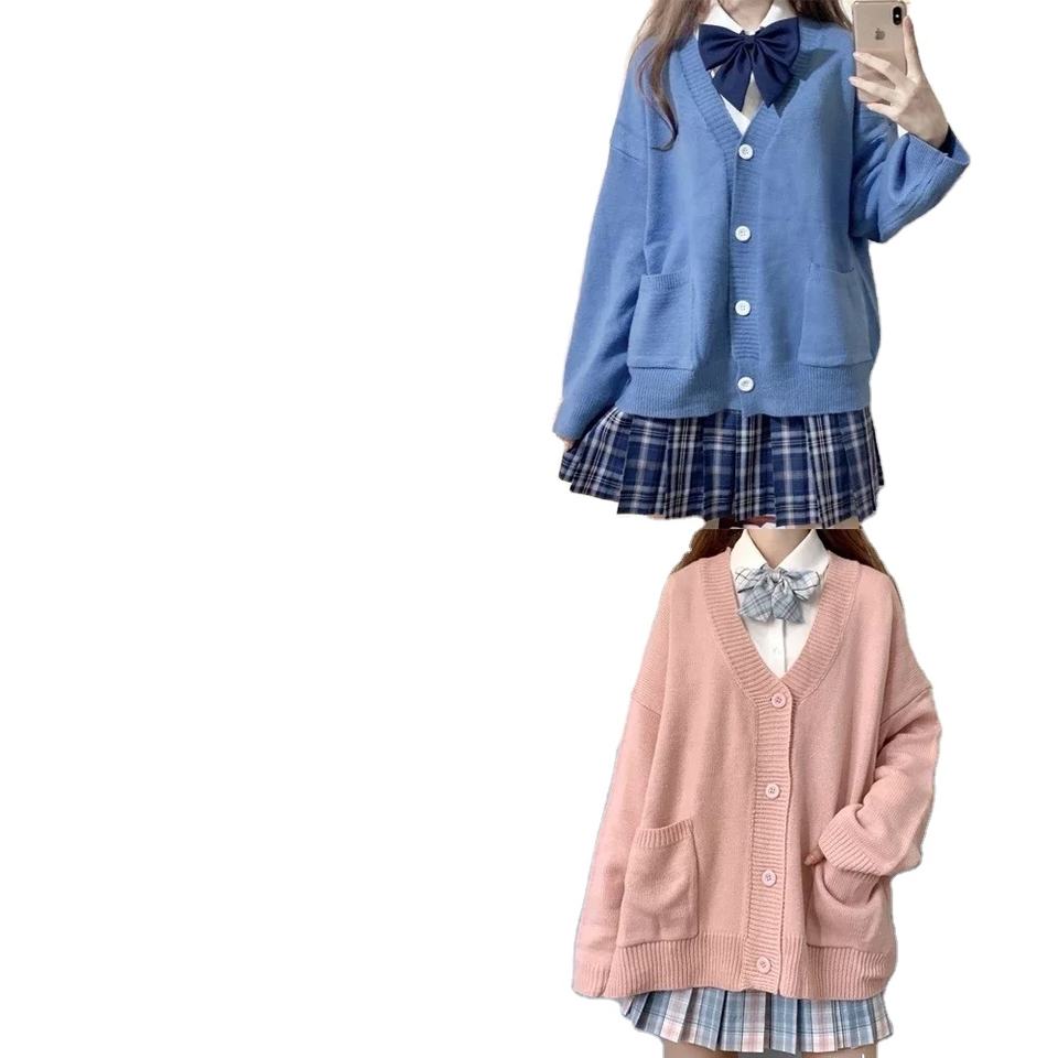 ชุดเครื่องแบบนักเรียนญี่ปุ่นพร้อมสเวตเตอร์ถักสำหรับฤดูใบไม้ผลิและใบไม้ร่วงชุดคาร์ดิแกน JK นักเรียนหญิงคอสเพลย์