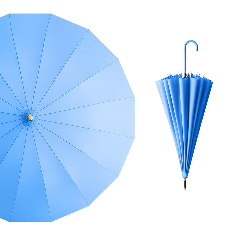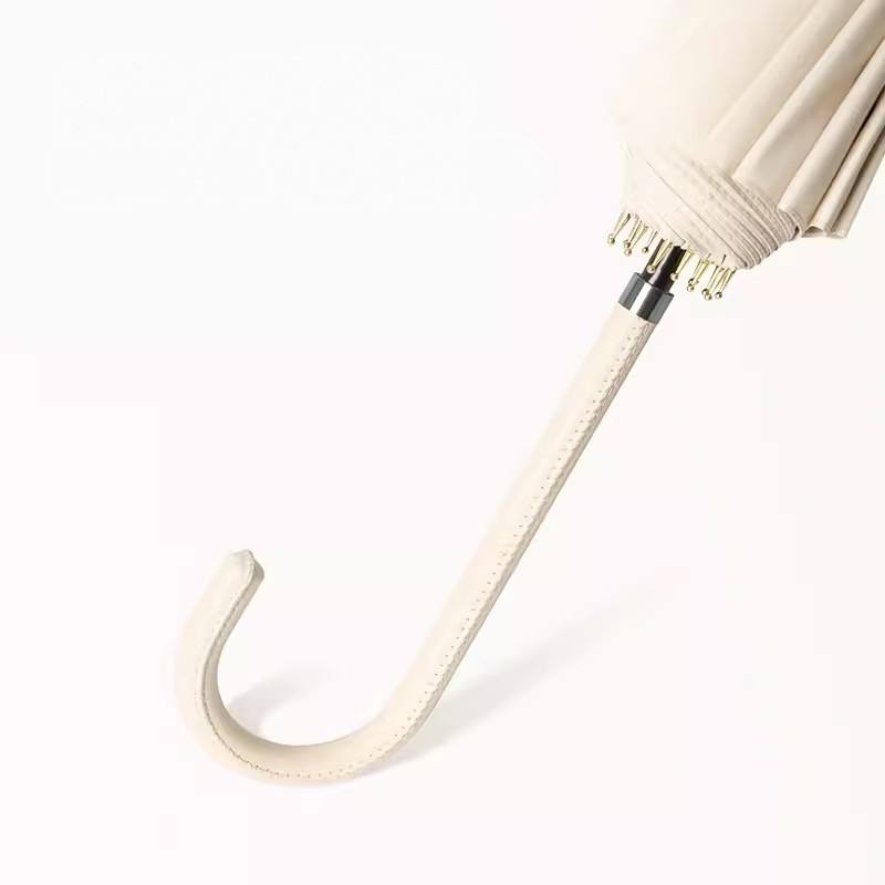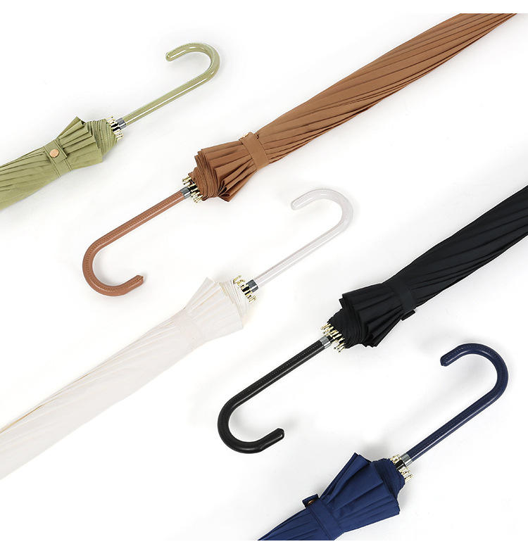 ร่มญี่ปุ่นและเกาหลีใต้แบบเรียบง่าย ขนาดเล็ก ดีไซน์สดใส 16 ก้าน ด้ามยาว ร่มโฆษณาด้ามหนังสำหรับผู้หญิง