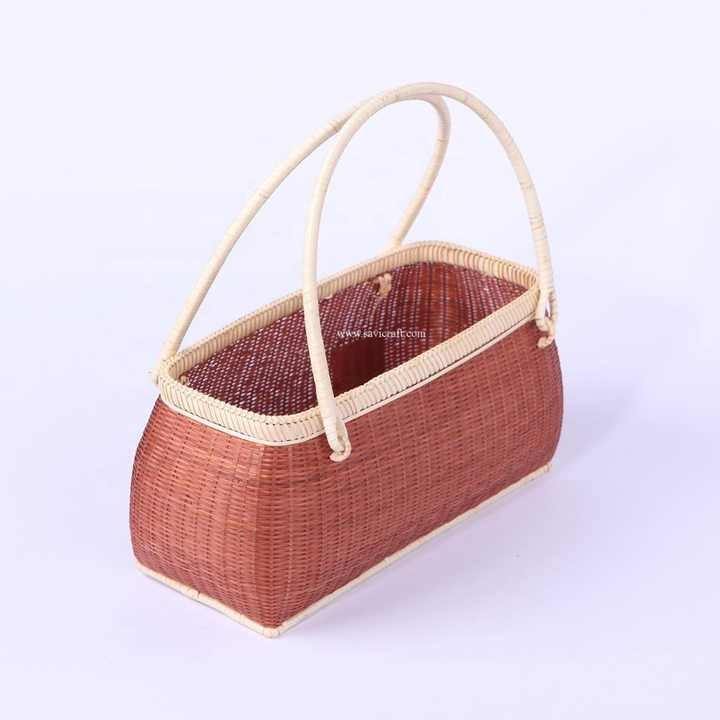 กระเป๋าโท้ทมือจับไม้ไผ่สไตล์ญี่ปุ่น100% วัสดุธรรมชาติที่มีหลายสีฤดูร้อนฤดูหนาวใช้โดยตรงจากโรงงานเวียดนาม