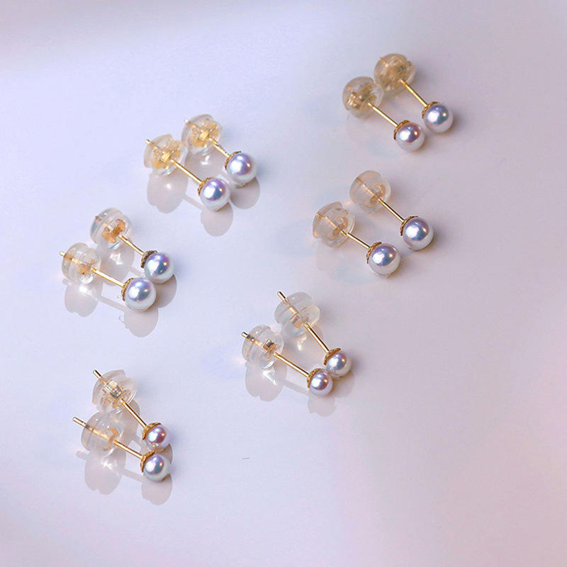 ต่างหูมุกอะโกยะญี่ปุ่น 3-6 มม. แบบติดหู ขนาดเล็ก สีสันสดใส พร้อมเอฟเฟกต์หลอดไฟ ทอง 18K - ต่างหูแบบติดหูขนาดเล็ก