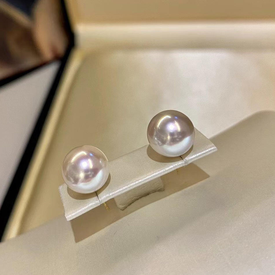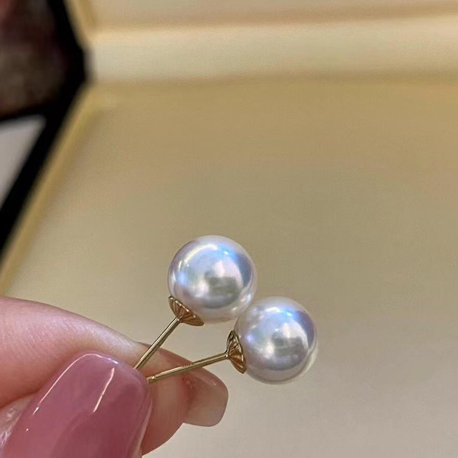ต่างหูมุกอะโกยะญี่ปุ่นแบบเรียบง่าย ทอง 18K แสงเงาสะท้อนสุดหรู สีขาวใส ขนาด 5-9 มม.