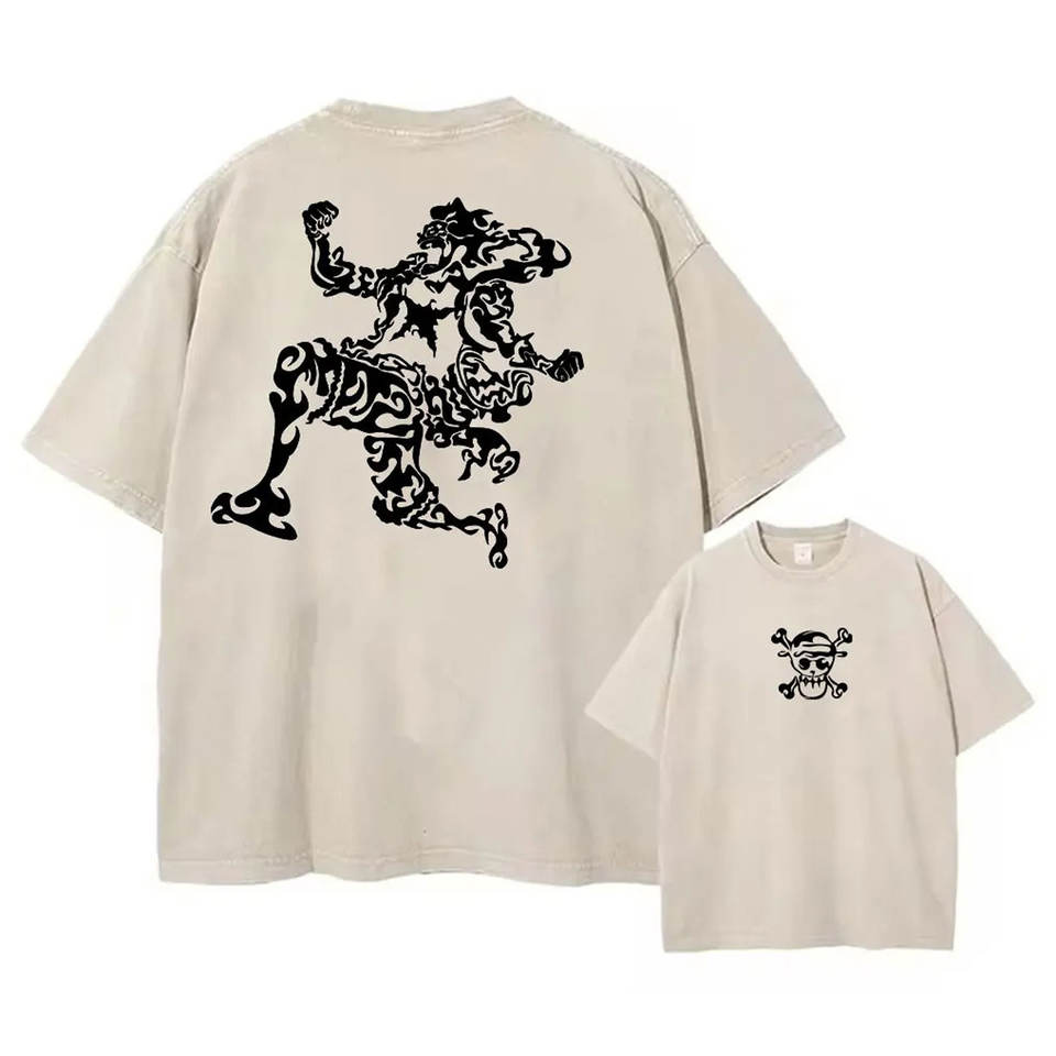 เสื้อยืดโอเวอร์ไซส์ลายกราฟิกอนิเมะญี่ปุ่น สไตล์สตรีทแวร์ ลุควินเทจ ซักแล้ว แขนสั้น ใส่สบาย สำหรับผู้ชาย แฟชั่นแนวอินเทรนด์สำหรับคนเมือง