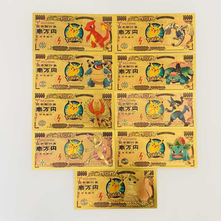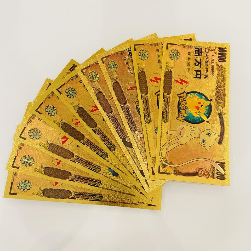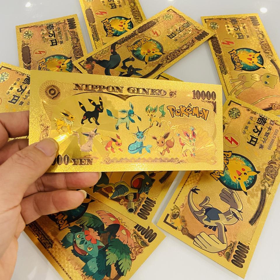 การ์ดสะสมอนิเมะญี่ปุ่น ปิกาจู ธนบัตรเคลือบทอง 24K มูลค่า 10,000 เยน ของขวัญสำหรับเด็ก