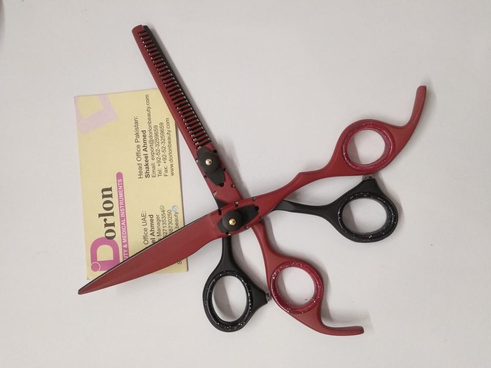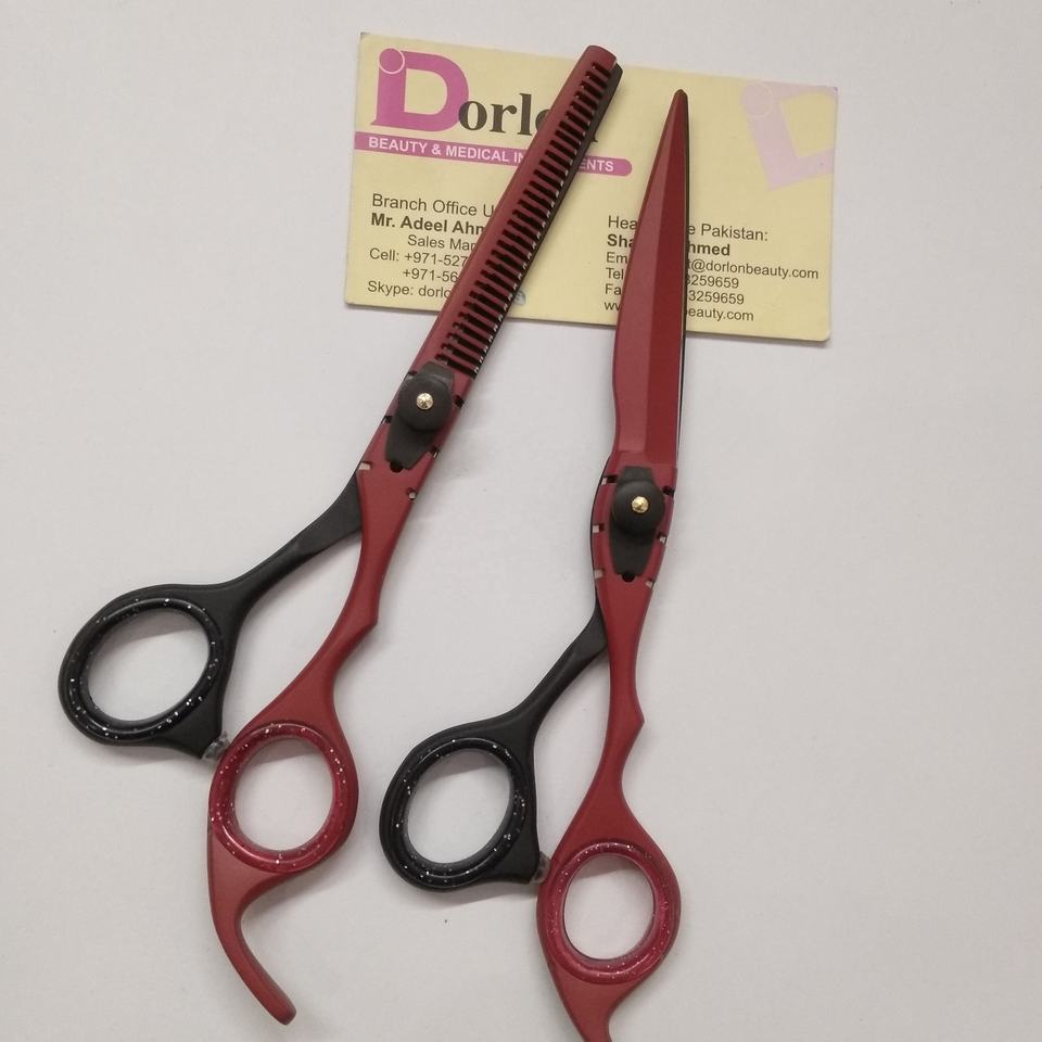 ชุดกรรไกรตัดผมญี่ปุ่นกรรไกรตัดผมแบบมืออาชีพสีแดงสีดำ