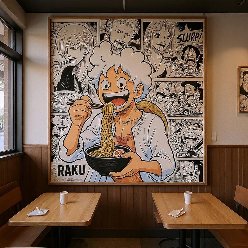 วอลเปเปอร์ลายการ์ตูนญี่ปุ่นลูฟี่สำหรับตกแต่งผนังร้านราเม็ง