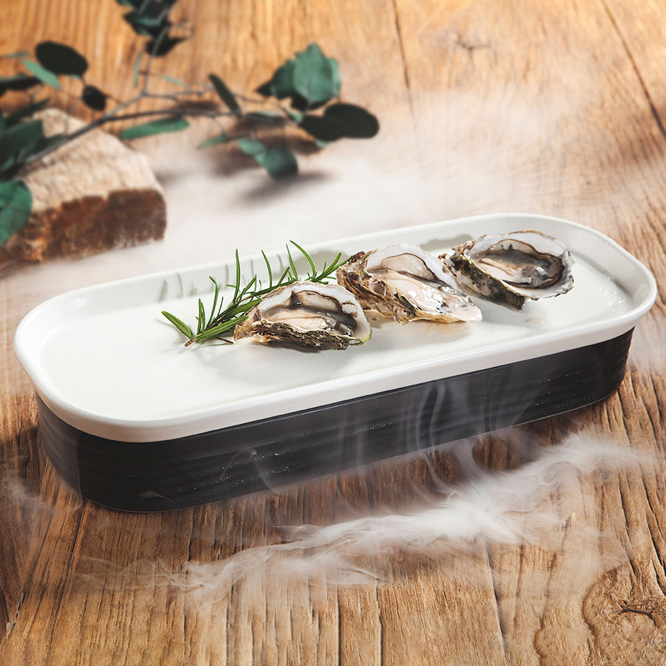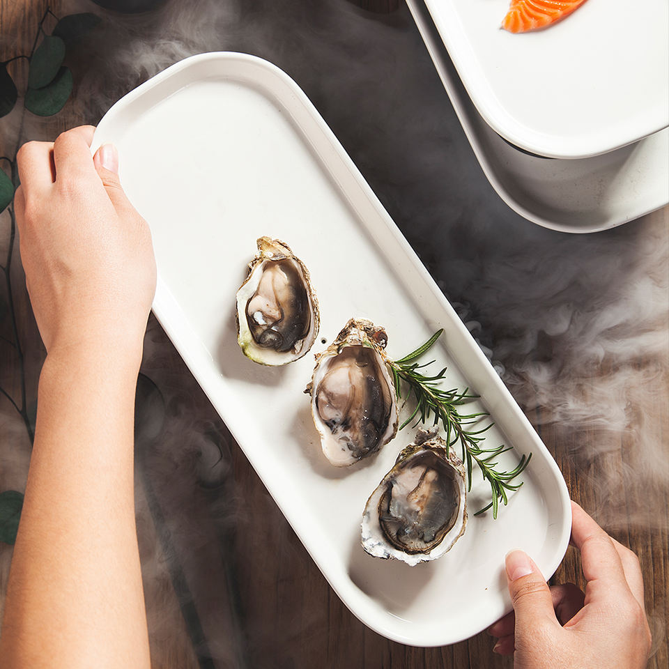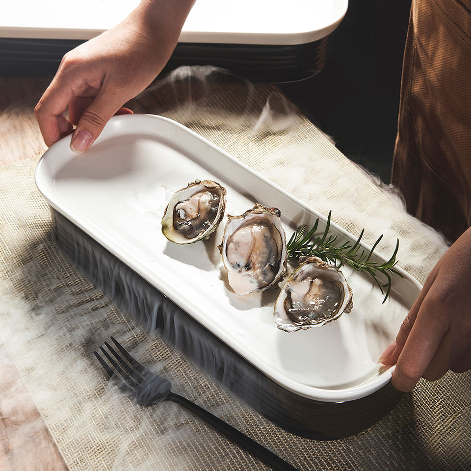 จานเซรามิกใส่อาหารญี่ปุ่นสีขาว12 "13.75" 16 "ถาดน้ำแข็งแห้งเซรามิกลายปลาแซลมอนซูชิจานสำหรับร้านอาหาร