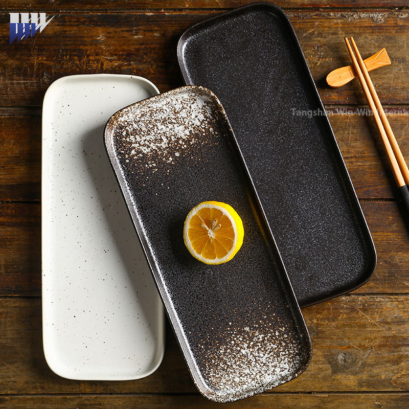 จานเซรามิกญี่ปุ่น จานแบนสำหรับทำซูชิ จานอาหารสำหรับร้านอาหาร ภาชนะบนโต๊ะอาหาร จานขนมสำหรับใช้ในบ้าน จานสี่เหลี่ยม