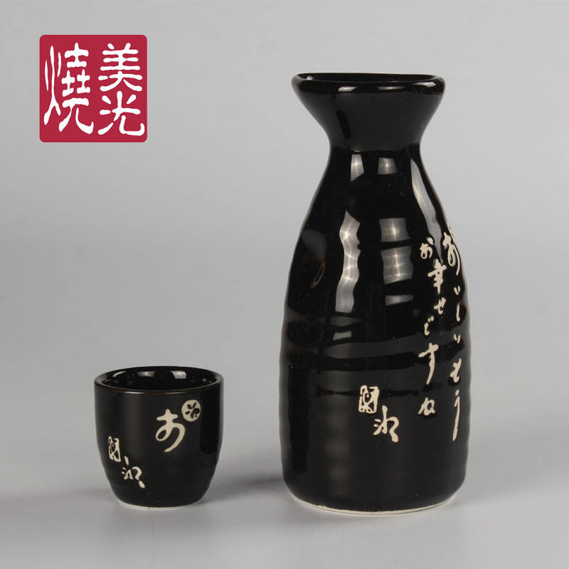 สาเกเซรามิกแบบญี่ปุ่น,ชุดภาชนะเซรามิกสโตนแวร์สาเกสีดำเงาหม้อถ้วยชุดของขวัญ