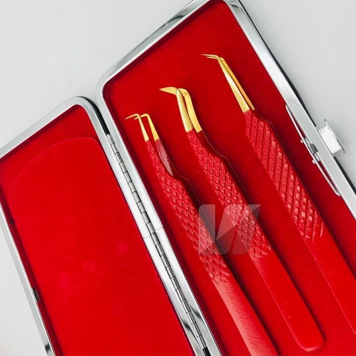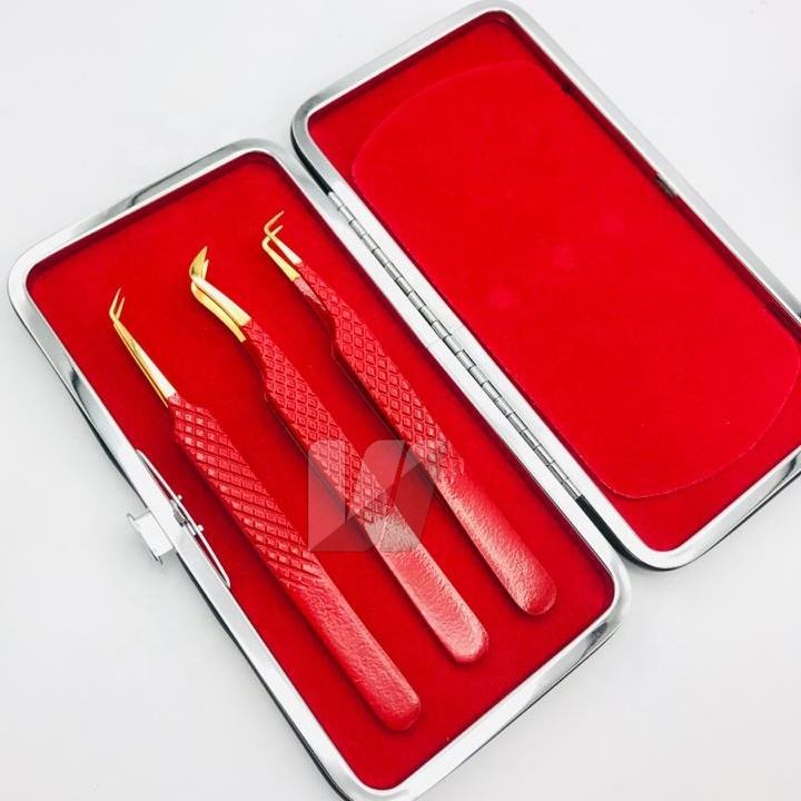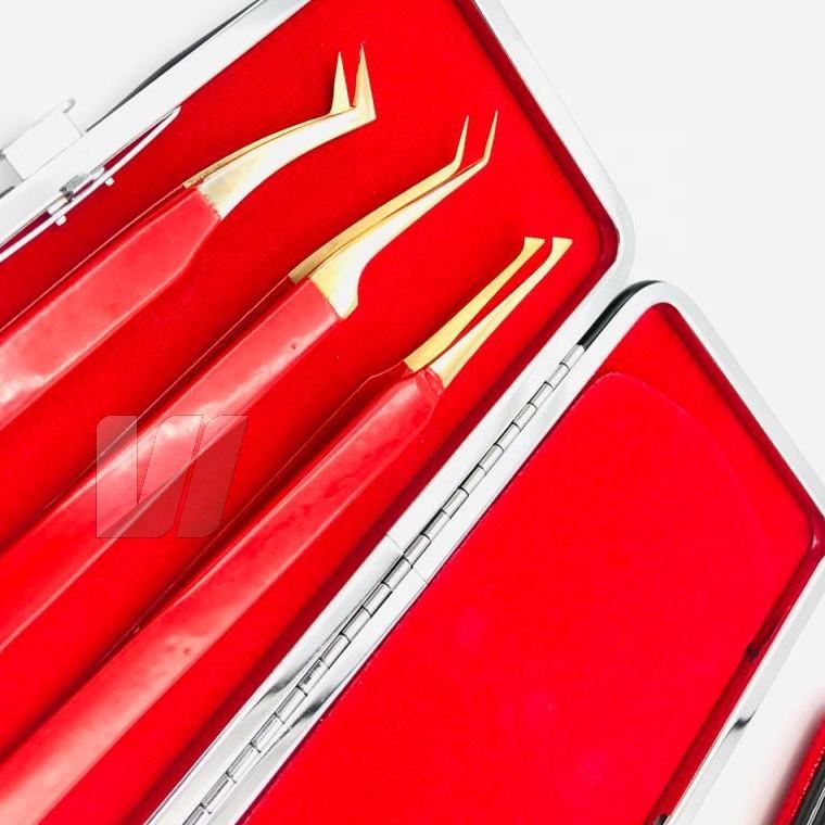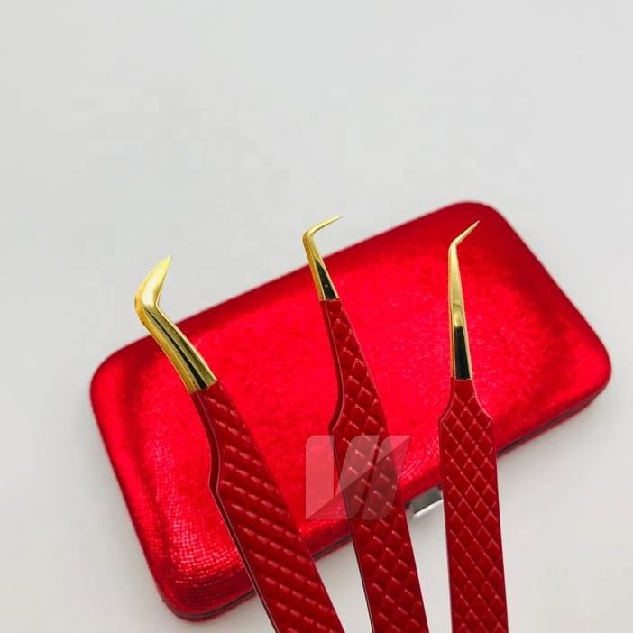 แหนบต่อขนตาสแตนเลสแบบปลายแหลมสีแดงทองแหนบปลายแหลมปรับแต่งโลโก้ได้ตามต้องการแบบญี่ปุ่น
