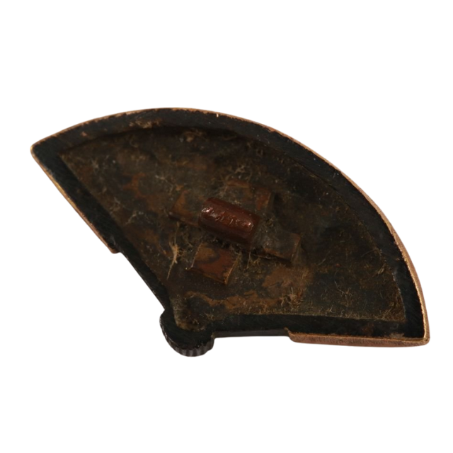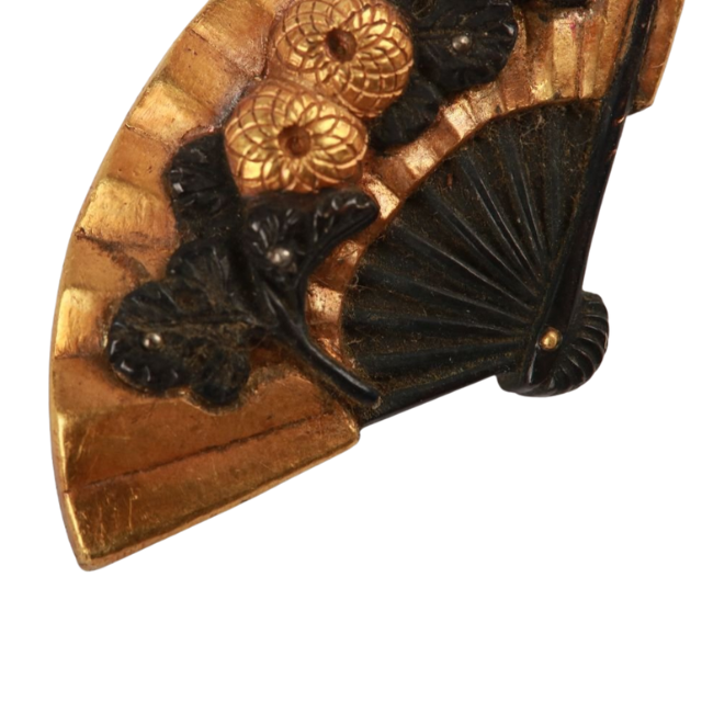 ด้ามดาบทองแดงยุคเอโดะของญี่ปุ่น ลายดอกคิคุ (ดอกเบญจมาศ) แบบฝังลาย ไม่มีตราประทับ ของโบราณ ขนาด 2.65 ซม. x 1.44 ซม.
