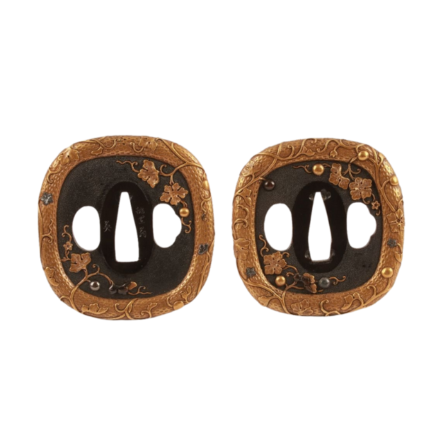 ดาโชะทองแดงขัดเงาโบราณยุคเอโดะของญี่ปุ่น พร้อมลายฝังนาแนโกะ ลายเถาวัลย์มะระอิโรเอะ โมโมกะ โออิ