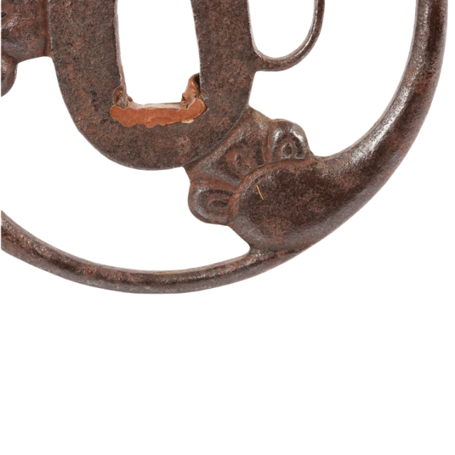 ที่ครอบดาบเหล็กโบราณขัดเงาแบบญี่ปุ่นยุคเอโดะ ลายซูกาชิ รูปทรงกลม ไม่มีเครื่องหมาย