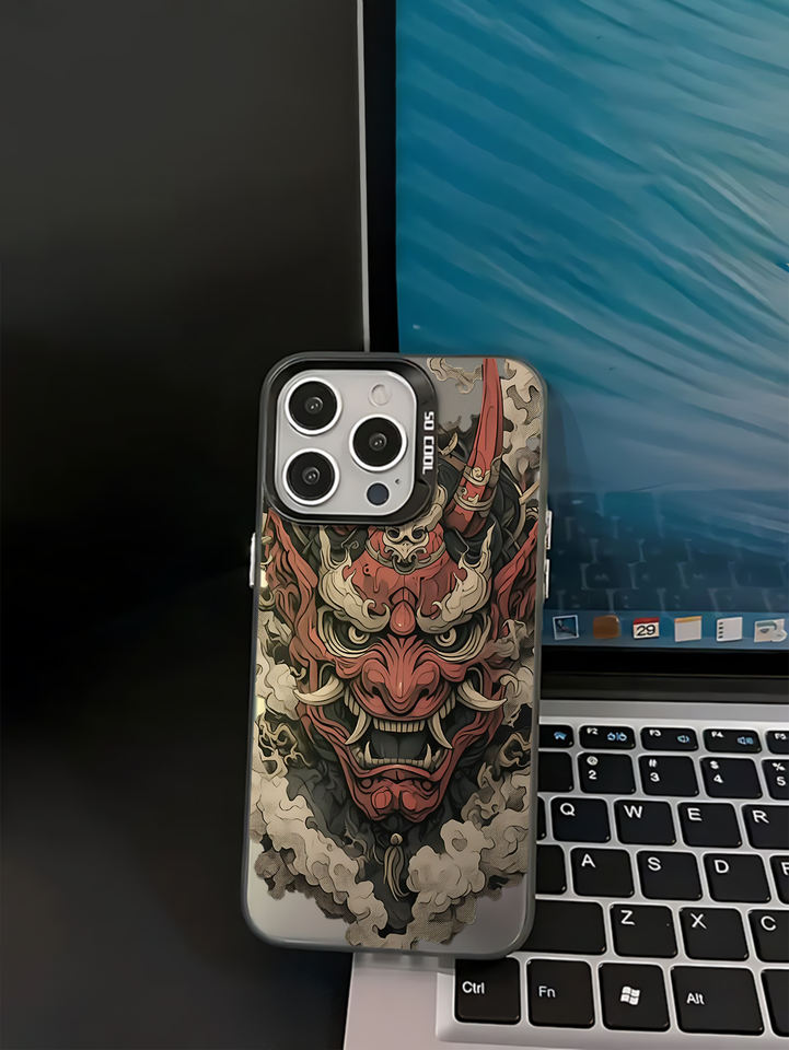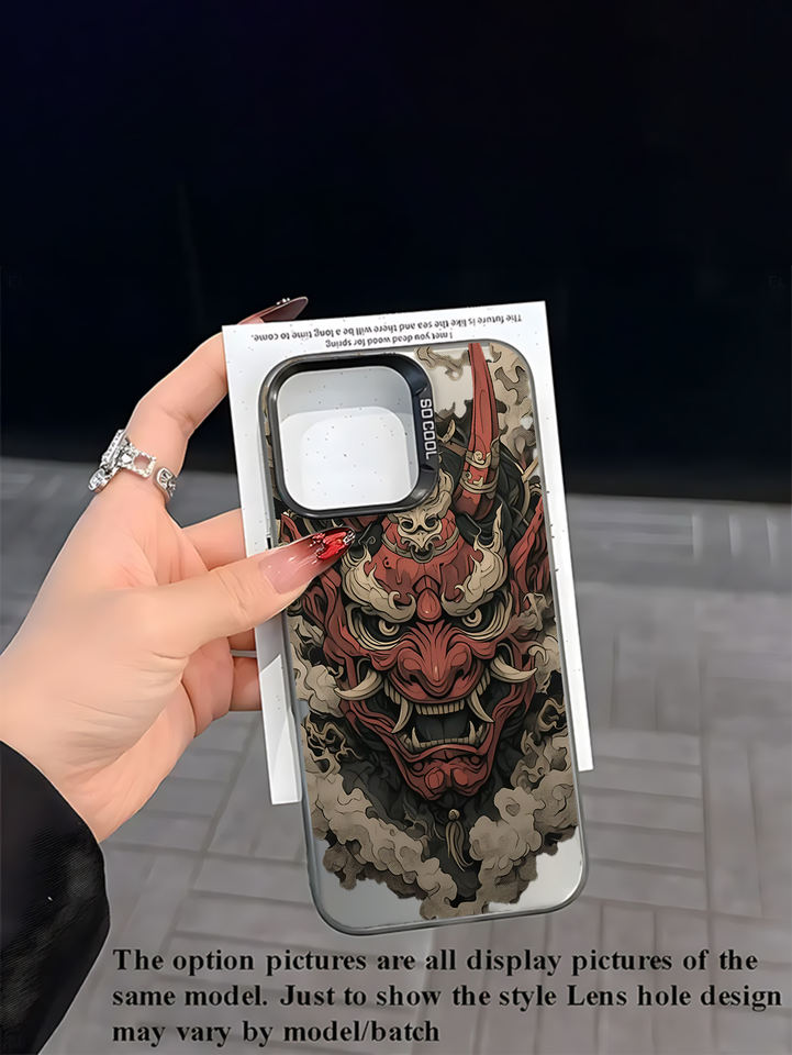 เคสโทรศัพท์ลายหน้ากากฮันย่าญี่ปุ่น วัสดุ TPU สีเงิน IMD เหมาะสำหรับ iPhone 17, 16, 15, 14 Plus, 13, 12, 11 Pro Max
