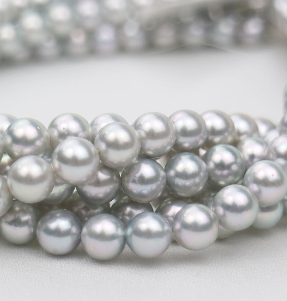 ไข่มุกอะโกย่าญี่ปุ่นคุณภาพสูง สีฟ้า ทรงกลม ขนาด 7.0-8.5 มม. เกรด AAA รับรองโดยผู้ตรวจสอบบุคคล สำหรับขายส่ง