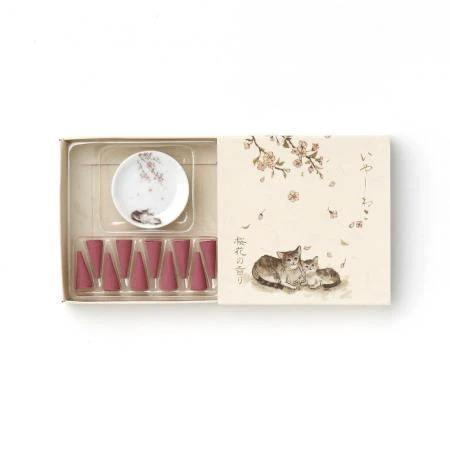 กรวยธูปญี่ปุ่นพร้อมที่ใส่ธูปชุดรักษาแมวไม้จันทน์เชอร์รี่พีชผลไม้กระจายกลิ่นหอมขายส่ง