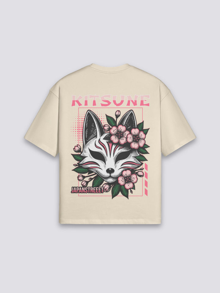 เสื้อยืดคิทสึเนะญี่ปุ่น ระบายอากาศได้ดี ซักน้ำได้ ผ้าฝ้ายแท้ สไตล์วินเทจย้อนยุค แบรนด์แฟชั่น เสื้อยืดแขนสั้น