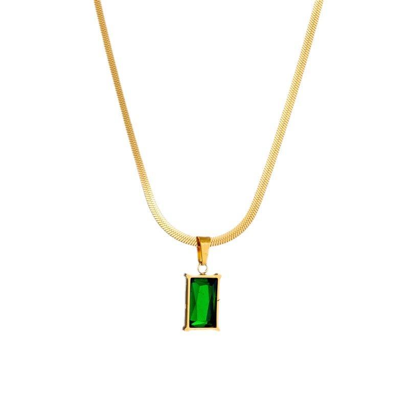 จี้เพชรพลอยสังเคราะห์ทรงมรกตหรูหราสไตล์ญี่ปุ่น-เกาหลี พร้อมสร้อยคอไทเทเนียมลายกระดูกงู แฟชั่นจี้ห้อยคอ