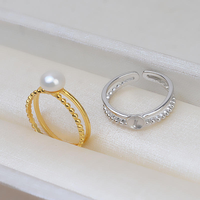 แหวนเงินแท้ S925 สไตล์ญี่ปุ่น-เกาหลี สำหรับผู้หญิง งาน DIY เครื่องประดับมุก ปรับขนาดได้ แบบฝังเปล่า