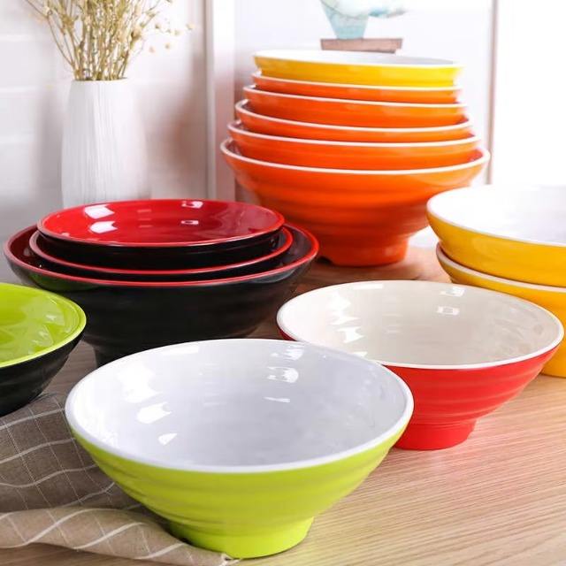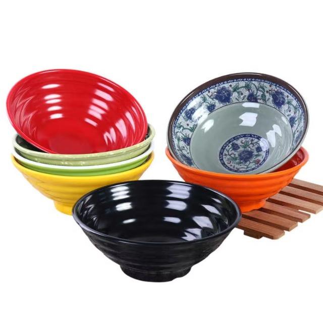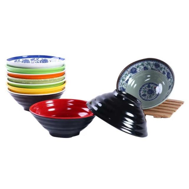 ชามบะหมี่กึ่งยาวแบบญี่ปุ่นชามเมเนียพอร์ซเลนสำหรับใช้ในเชิงพาณิชย์ชามพลาสติกเส้นก๋วยเตี๋ยวขนาดใหญ่สำหรับเสิร์ฟก๋วยเตี๋ยวข้าว