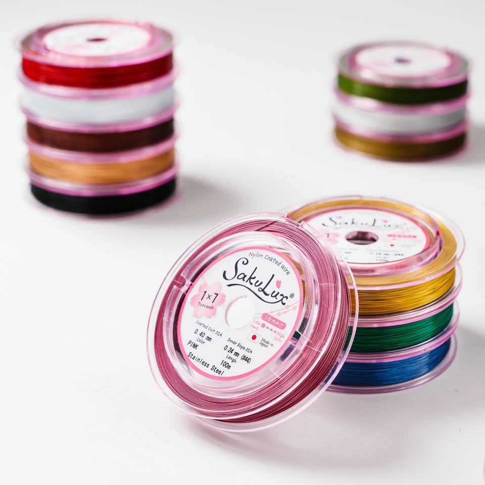 ส่วนประกอบเครื่องประดับลวดสแตนเลสเคลือบไนลอนสีดำ ผลิตในญี่ปุ่น สำหรับการทำเครื่องประดับ