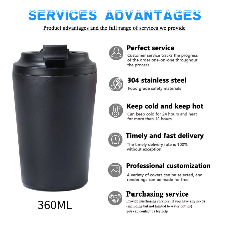 แก้วนมญี่ปุ่นแบบพกพา เก็บความร้อน-เย็น ด้วยระบบสุญญากาศ ผลิตจากสแตนเลส ขนาด 12 ออนซ์ แก้วกาแฟแบบสองชั้น ใช้ซ้ำได้ ปรับแต่งได้