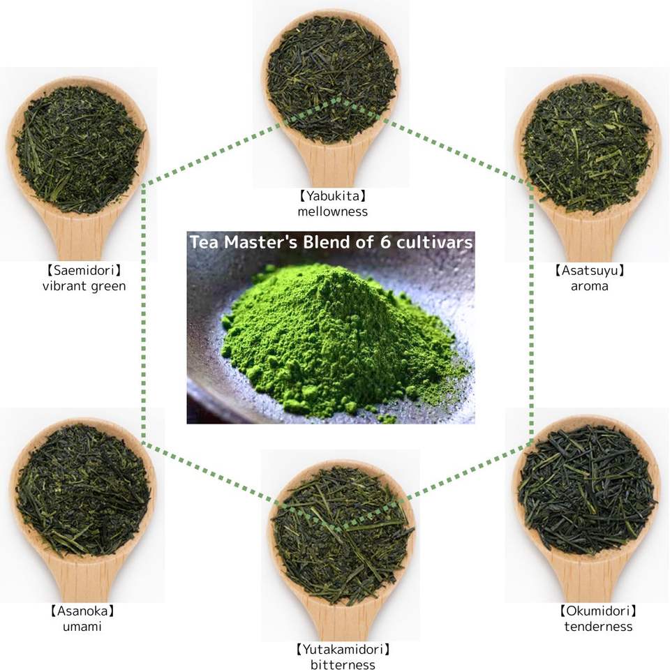 สายพันธุ์ชา (ชาปรุงพิเศษของ Tea Master)::เซมิโดริ, ยูทาคามิโดริ, ยาบุคิตะ, อาซานอคกะ, คานายามิโดริ, โอคุมิโดริ