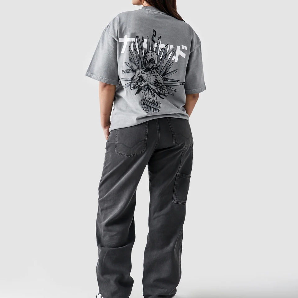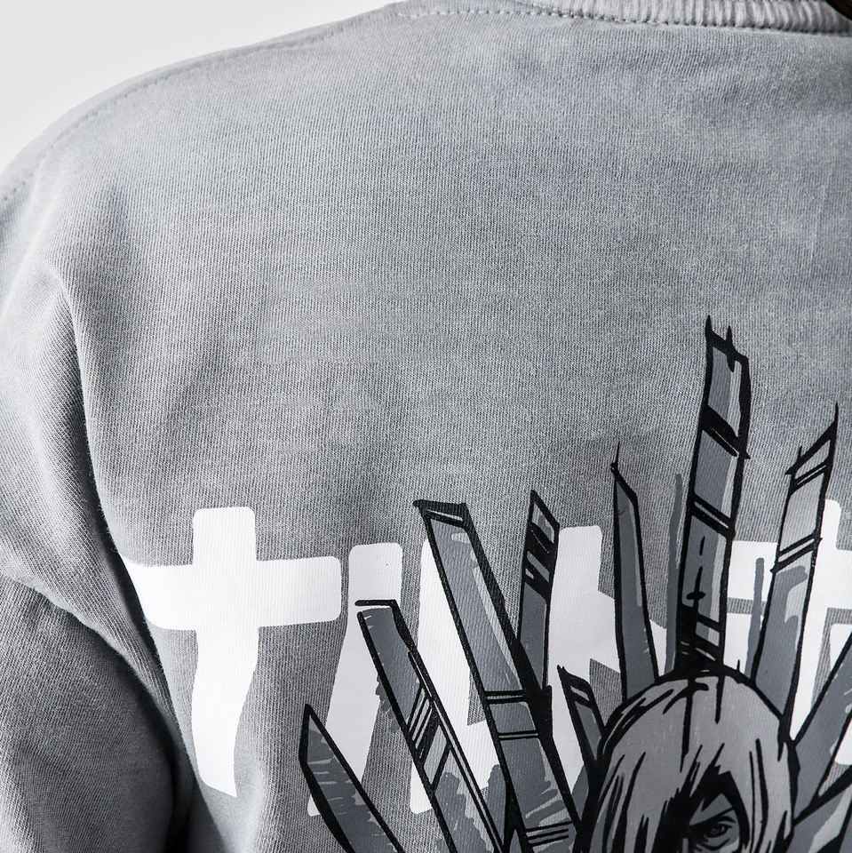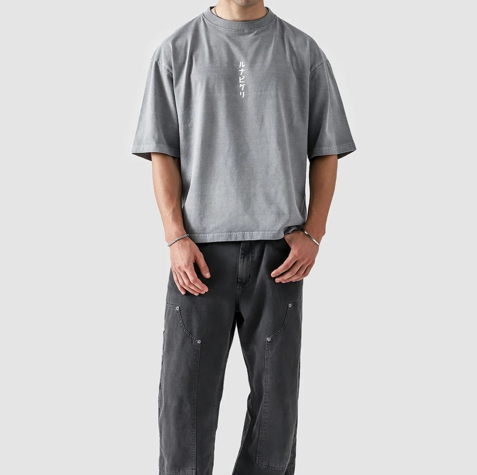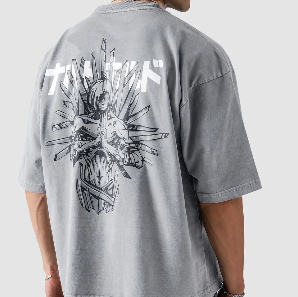 เสื้อยืดไหมพรมสีเทาแบบเรียบสไตล์ญี่ปุ่นลายกราฟิกชิปปุเด็นทรงโอเวอร์ไซส์แนวสตรีทแวร์อนิเมะทรงหลวม