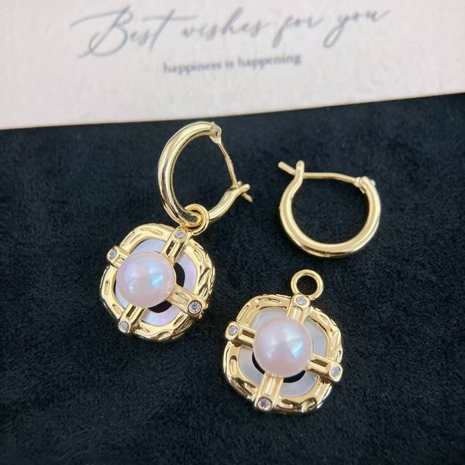 ต่างหูมุกอะโกยะน้ำทะเลญี่ปุ่น แฟชั่นนางฟ้าตัวน้อย สไตล์ยุโรปอเมริกัน ใกล้เคียงกับมุกไร้ตำหนิ เครื่องประดับห้อยระย้า