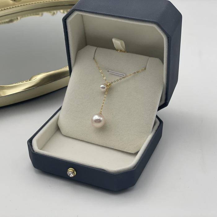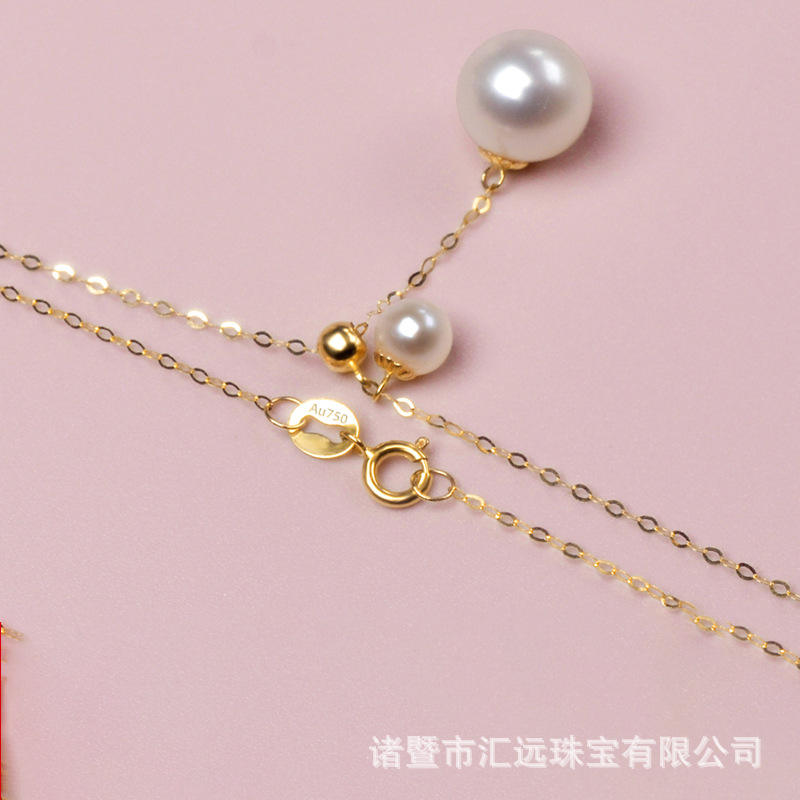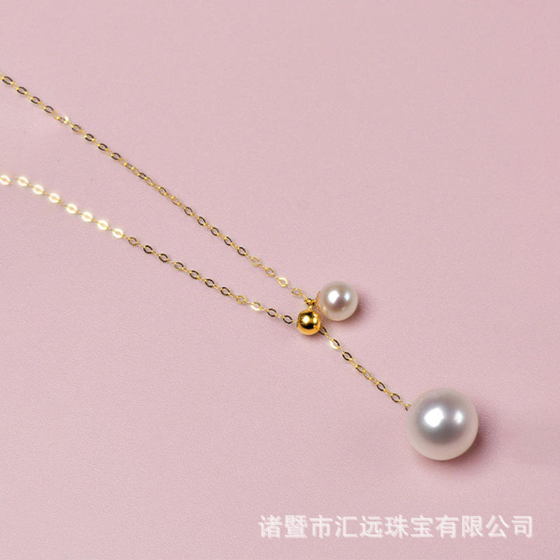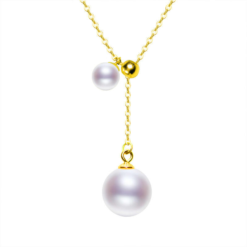 จี้ไข่มุกอะโกยะน้ำทะเลญี่ปุ่น พร้อมสร้อยคอทอง 18K รูปตัว Y แบบสองชั้น ระยิบระยับ