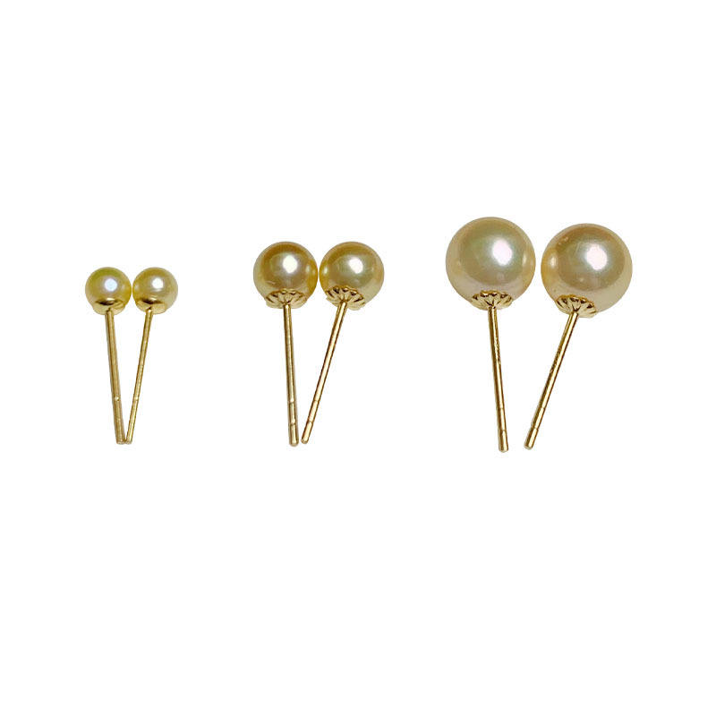 ต่างหูมุกอะโกยะน้ำทะเลญี่ปุ่น 4-6 มม. รุ่นเฟเธอร์คิง ทอง G18K แบบเข็ม สะท้อนแสง แฟชั่น