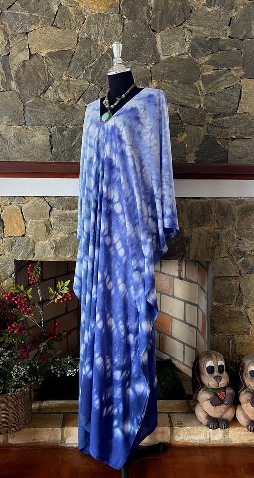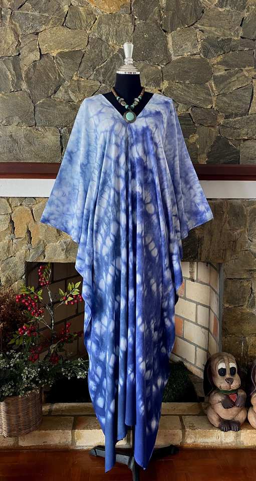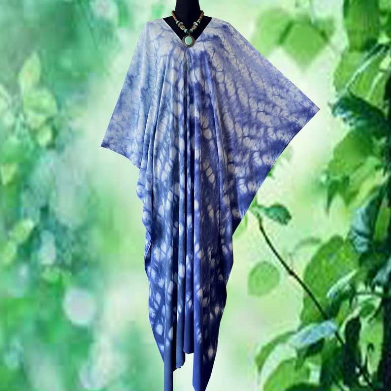 Japanese Shibori Indigo Kaftan Dress One Size Tie Dye Bohemian Caftan Beach Cover Up Flowy Maxi Dress Comfortable Summer Wear