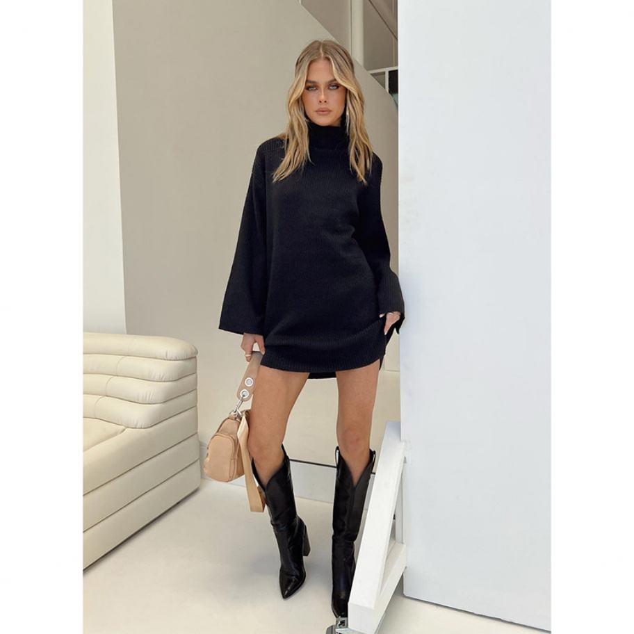 เสื้อสเวตเตอร์ไหมพรมคอสูงเนื้อนุ่มสไตล์ญี่ปุ่นสำหรับผู้หญิง ชุดลำลองความยาวปานกลางสไตล์สบายๆ สำหรับฤดูใบไม้ร่วงฤดูหนาว ทรงเข้ารูปตามธรรมชาติ